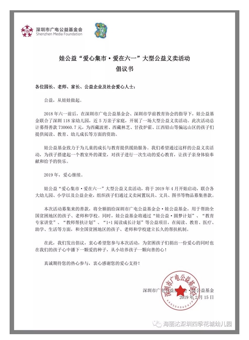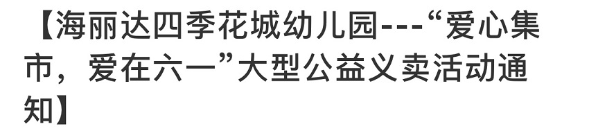 【海丽达四季花城幼儿园---“爱心集市,爱在六一”大型公益义卖活动通知】